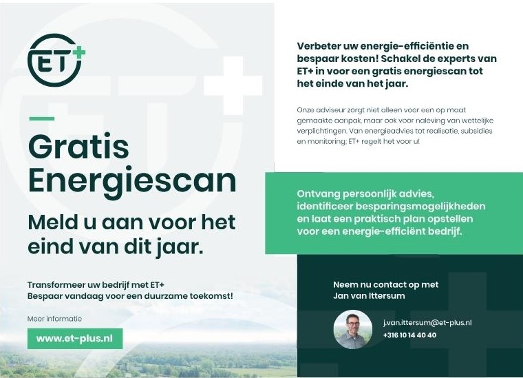 ET+ is een samenwerkingsverband van specialisten in energiebesparing en duurzame energieopwekking voor bedrijven.